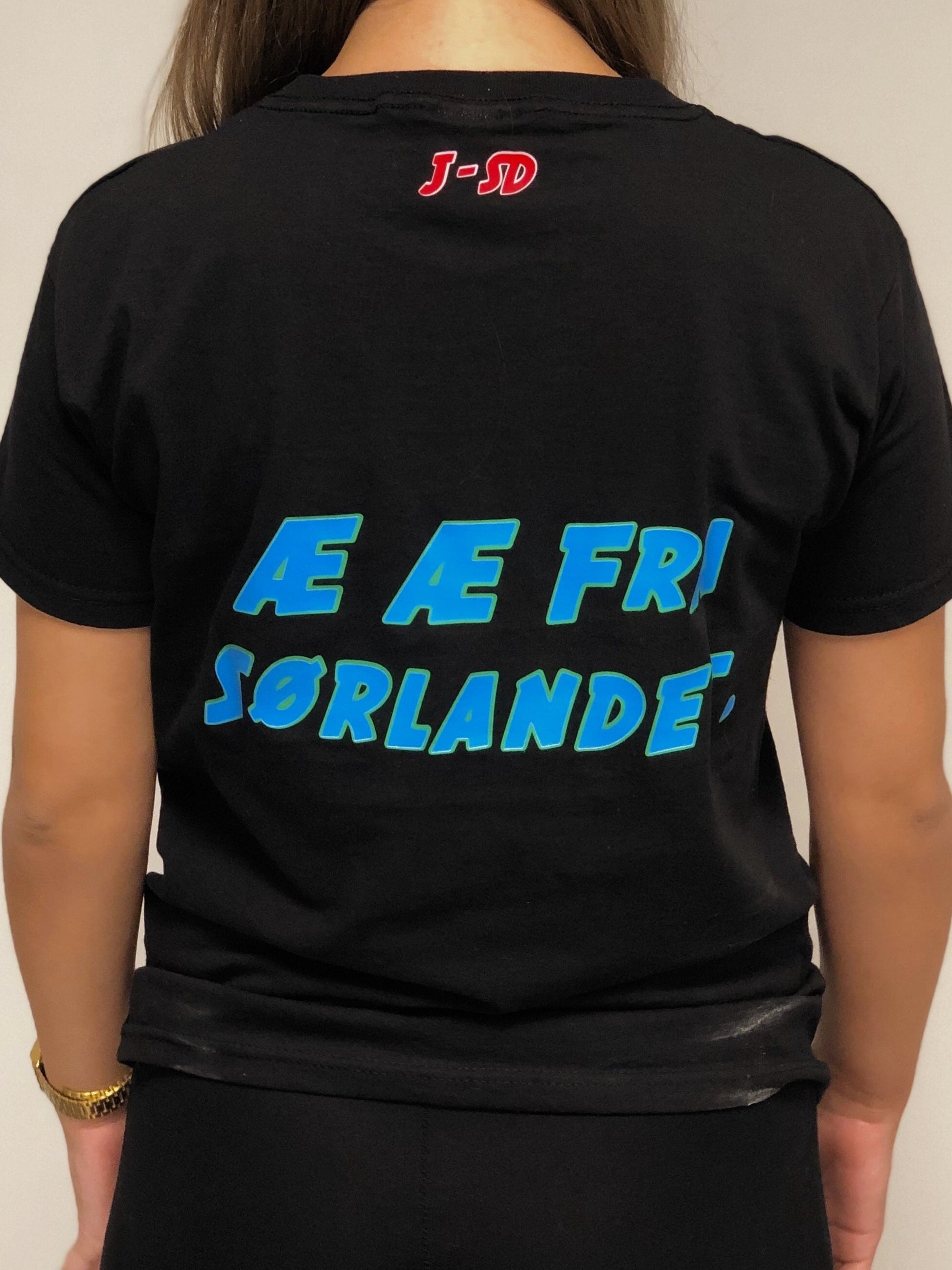 Æ æ fra Sørlandet, en t-skjorte som taler for seg selv. Sort farge med Javel-SeDet foran, med J-SD på venstre arm.